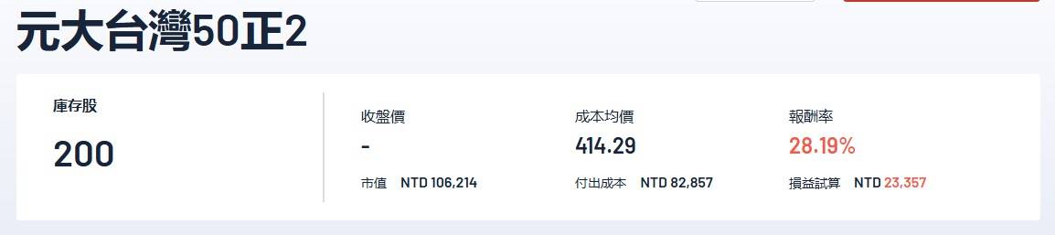 我是直接買0050正2,一月初買在401,跟者大盤漲是賺2倍